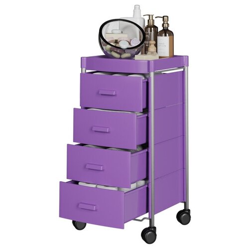 Тумба-стеллаж с ящиками пластиковая на колесиках GiroCo Agata 4 фиолетовая для ванной, прихожей, детской, кухни, офиса/Стеллаж 4 ящика,34,5х33,5х74 см