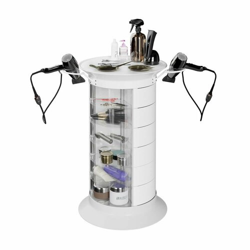 Парикмахерская тележка с 18 ящиками GiroCo Doble Plus 49х49х83 см белая, круглая, пластиковая, выкатная на колесиках для салона красоты, парикмахера