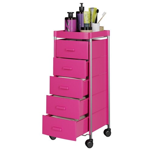 Этажерка с ящиками на колесиках GiroCo Agata 5 розовая для ванной, прихожей, детской, кухни, офиса, 5 ящиков, 34,5х33,5х89 см