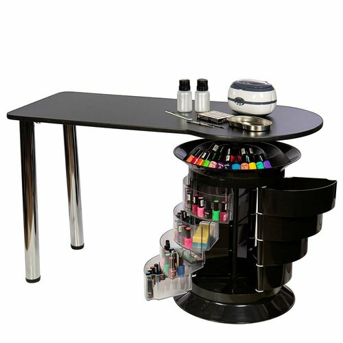 Маникюрный стол с 12 ящиками GiroCo Elite Plus 74х120х50/55 см черный, прозрачный для маникюра, для салона красоты, с тумбой