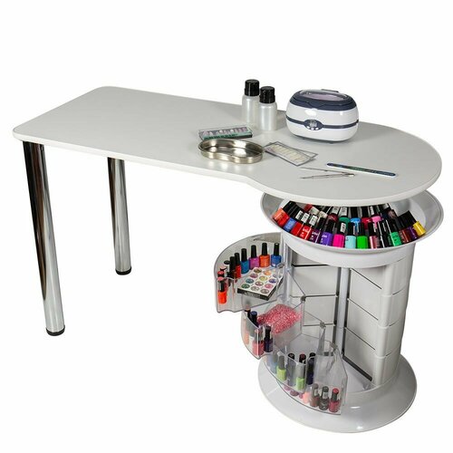 Маникюрный стол с 12 ящиками GiroCo Elite Plus 74х120х50/55 см белый, прозрачный для маникюра, для салона красоты, с тумбой