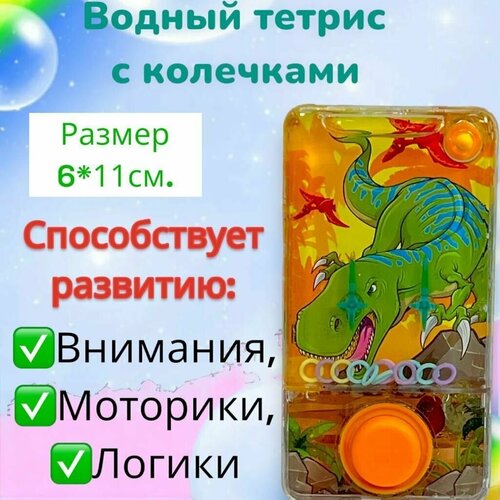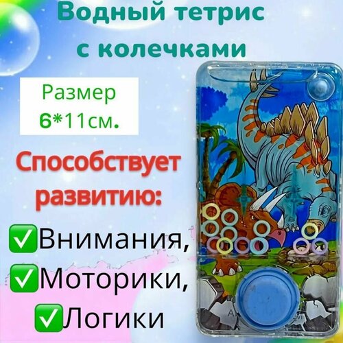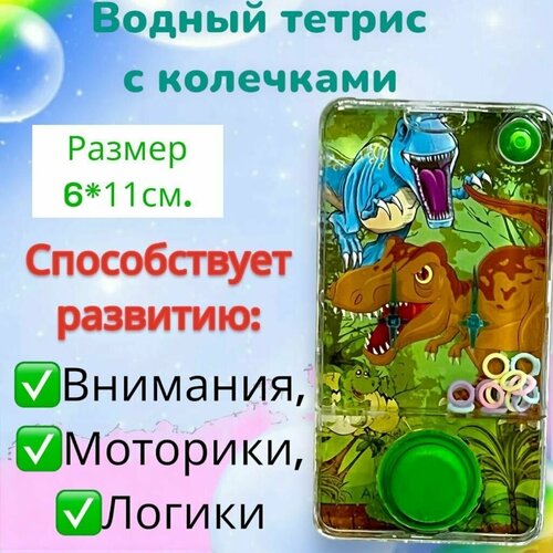 Игрушка - антистресс водный тетрис "Динозавры", Развивающие игрушки от 3 лет для девочек и мальчиков в дорогу, Водная игра с колечками - головоломка, 1 штука