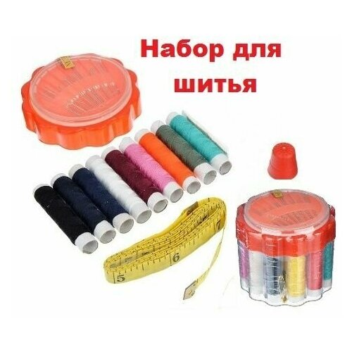 Набор для шитья 12 предметов, нитки иголки сантиметр наперсток, швейные принадлежности для дома, в дорогу, ремонта одежды, уроков труда