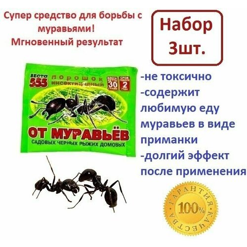 Средство, отрава, порошок, ловушка от муравьёв, набор 3 штуки, Веста-555, 30гр