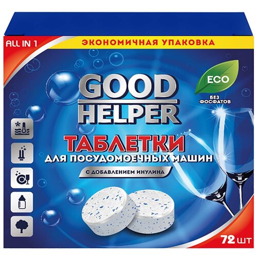 Таблетки GOODHELPER для посудомоечных машин, безфосфатные, с добавлением инулина, 72 шт.