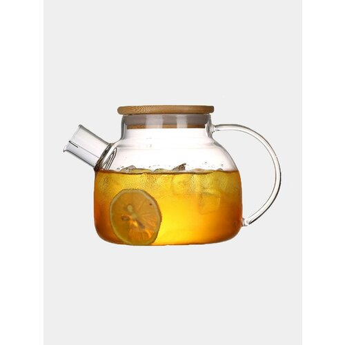 Чайник заварочный 1000мл с бамбуковой крышкой и стальным фильтром (стекло)