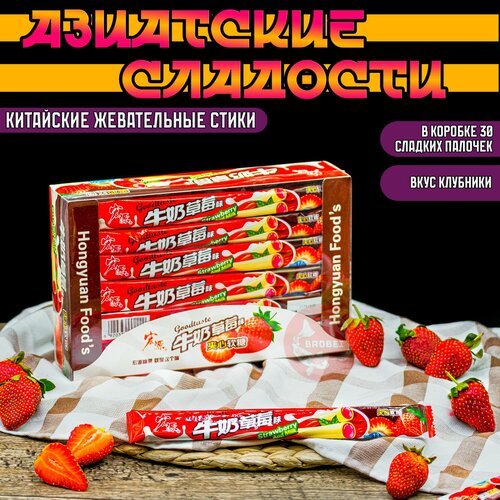 Тянучки китайские со вкусом клубники и сливок (16g*30) GoodTaste нуга, палочки, стики