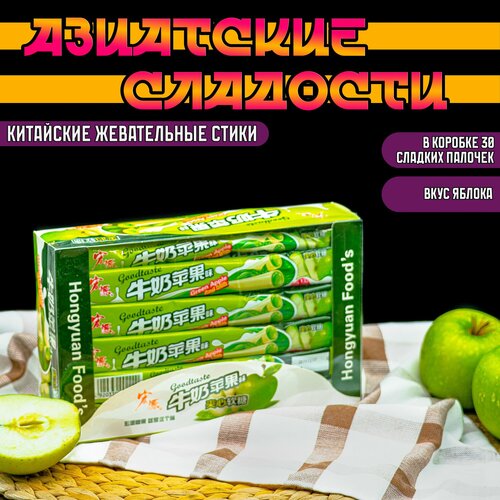 Тянучки китайские со вкусом яблока и сливок (16g*30) GoodTaste нуга, палочки, стики