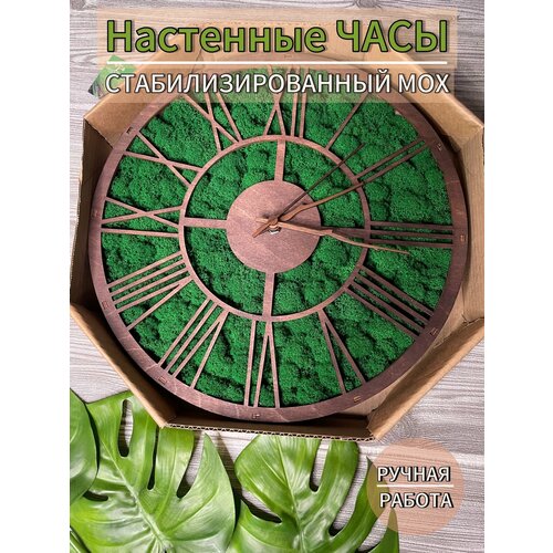 Эко часы настенные из дерева и стабилизированного мха диаметр 33 см