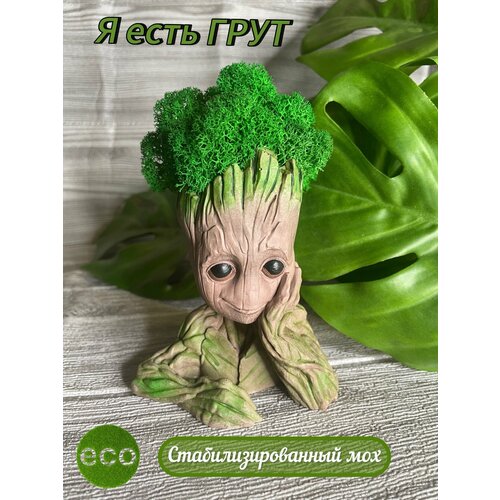 Декоративная фигурка "Я есть Грут" из гипса со мхом, (Groot, груд, грот)