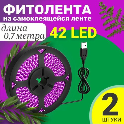 Фитолента светодиодная лента GSMIN B77 фитолампа для роста растений рассады USB (5 В, 42LED), 2шт (0,7 м)