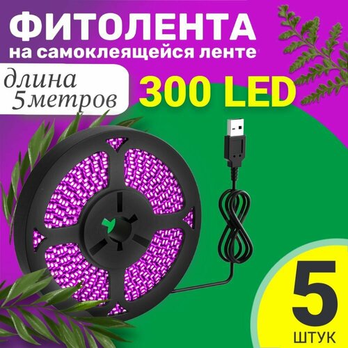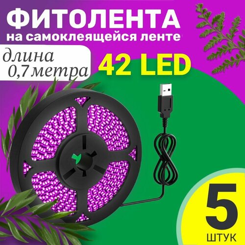 Фитолента светодиодная лента GSMIN B77 фитолампа для роста растений рассады USB (5 В, 42LED), 5шт (0,7 м)