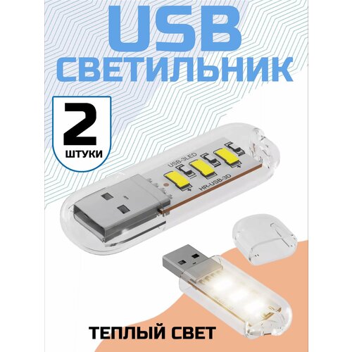 Компактный светодиодный USB светильник для ноутбука 3LED GSMIN B41 теплый свет, 3-5В, 2 штуки (Белый)