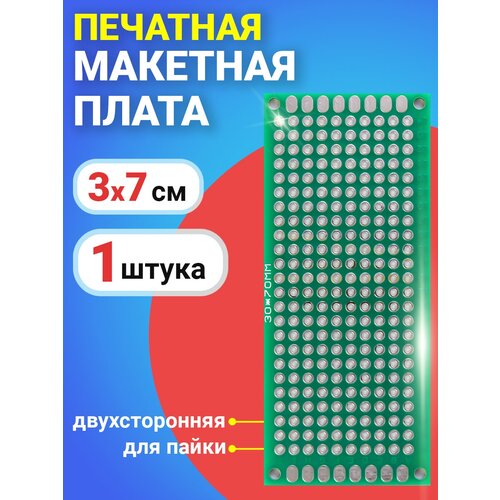 Печатная макетная плата 3 x 7 см двухсторонняя для пайки GSMIN PCB1 (Зеленый)