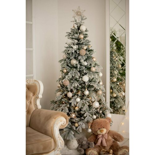 Искусственная елка заснеженная с встроенной гирляндой, Литая+ПВХ, 210см