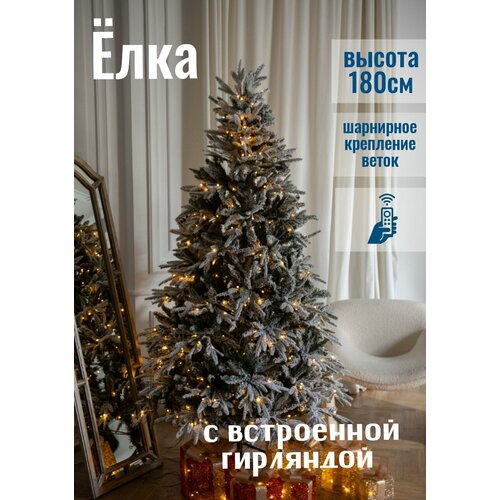 Искусственная елка заснеженная с встроенной гирляндой, Литая+ПВХ, 180см