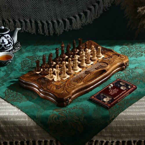 Нарды ручной работы "Лепнина", 60х30 см, с шахматным полем, массив ореха, Армения