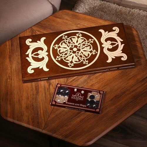 Handle Brand Нарды ручной работы "Завитки", с ручкой, 60х30 см, с шахматным полем, массив ореха, Армения