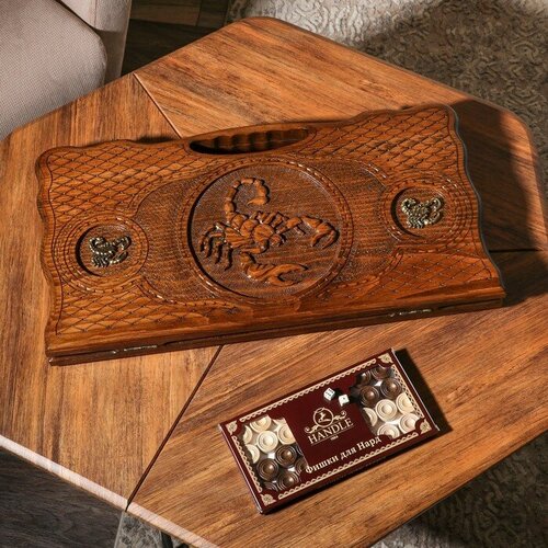 Handle Brand Нарды ручной работы "Скорпион", глубокая резка, с ручкой, 60х30 см, с шахматным полем, Армения