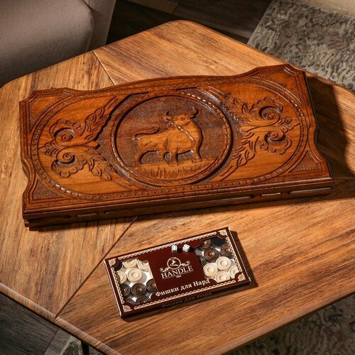 Handle Brand Нарды ручной работы "Бык", 60х30 см, с шахматным полем, массив ореха, Армения