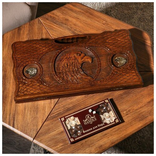 Нарды ручной работы "Орел", глубокая резка, с ручкой, 60х30 см, с шахматным полем, Армения