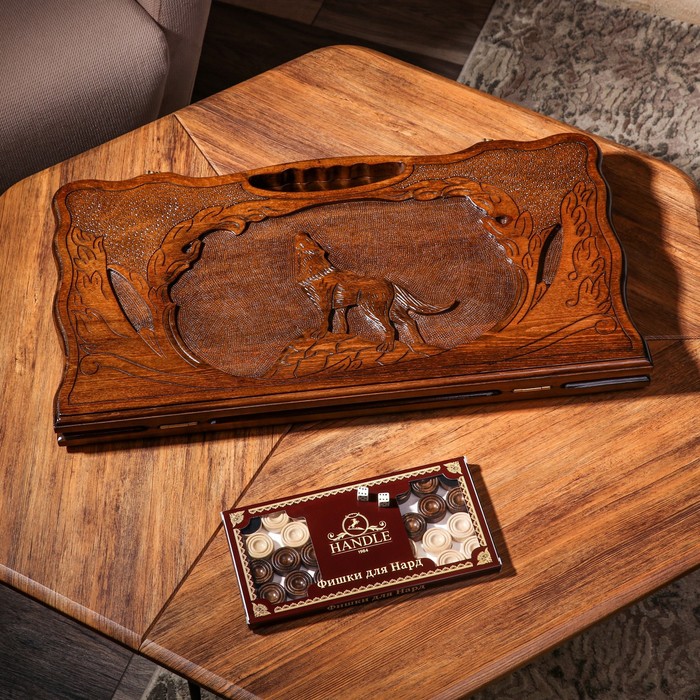 Нарды ручной работы "Волк воющий", с ручкой, 60х30 см, с шахматным полем, массив ореха, Ар