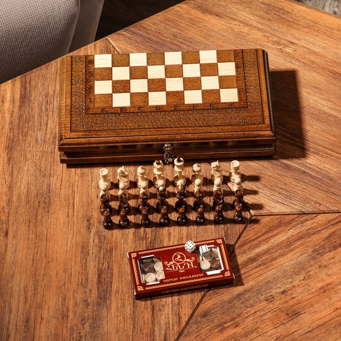 Нарды ручной работы "Звезда", 60х30 см, с шахматным полем, массив ореха, Армения