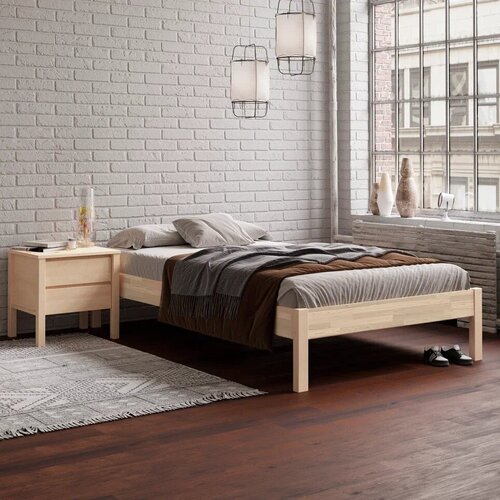 Кровать односпальная деревянная 90x200 см из массива берёзы Hansales, каркас с ортопедическим реечным дном, без изголовья
