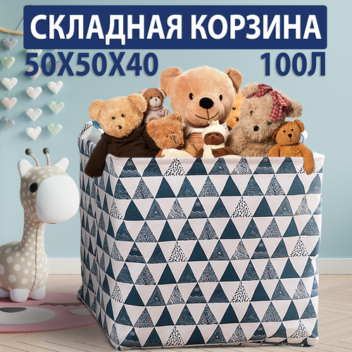 Корзина для игрушек XL 100л, для белья, Органайзер для хранения вещей, Мешок для одежды HARVEX 50х50х40 см, сине-белый