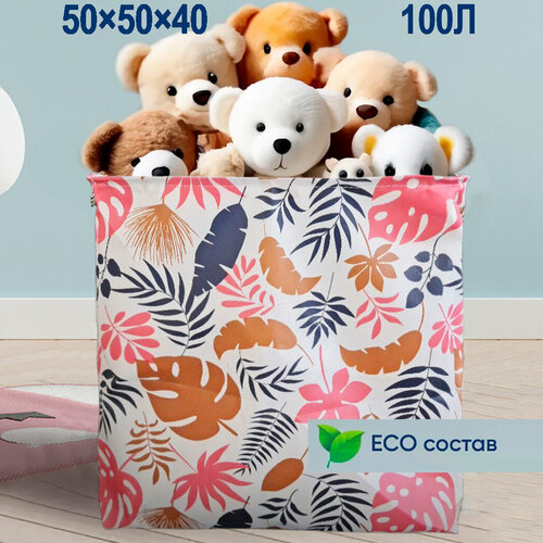 Корзина для игрушек XL 100л, для белья, Органайзер для хранения вещей, Мешок для одежды 50х50х40см, бело-розовая