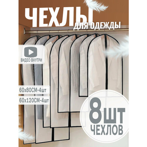 Набор чехлов для одежды HARVEX 8 шт (4 шт-60х80, 4 шт-60х120 см)
