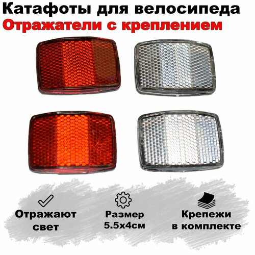 Катафоты для велосипеда с креплением зад+перед 4 штуки