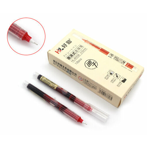 HL Ручка роллер HL-6 (красн) 0.5мм игольчатый стержень, прозрачный корпус, в к/кор HL-8008