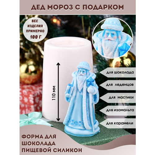 Молд силиконовый для шоколада и мыла Дед мороз с подарком