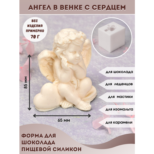 Молд силиконовый для шоколада и мыла Ангел в венке с сердцем