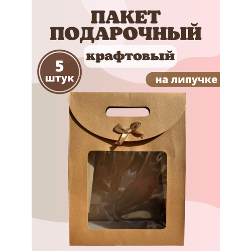 Подарочные пакеты крафтовые, размер L, 5 шт.