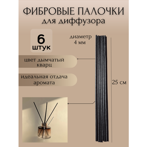 Фибровые палочки для ароматического диффузора, 25 см, 6 шт. (темно-серые)