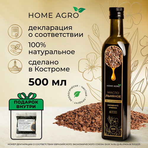 Льняное масло холодного отжима HOME AGRO нерафинированное 500 мл