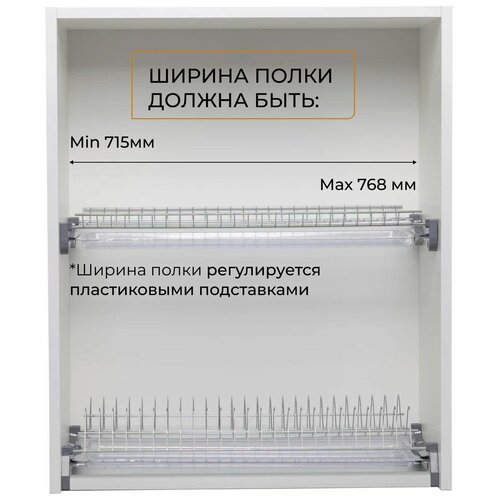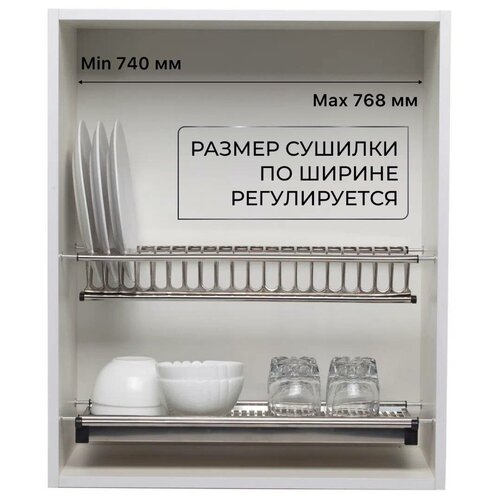 Сушилка для посуды в шкаф 80 см, навесная сушилка для посуды в кухонный шкаф с 2 поддонами, сушка