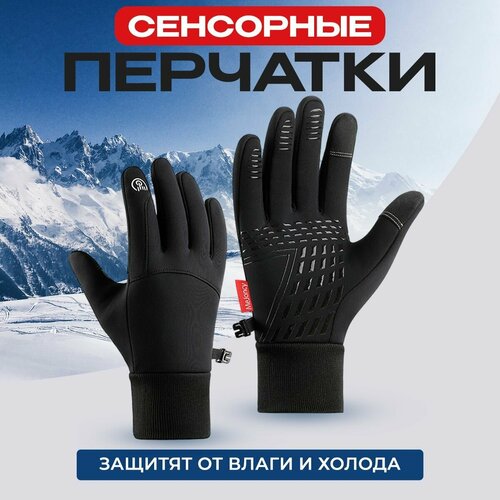 Перчатки мужские с сенсором, утепленные водоотталкивающие демисезонные перчатки / размер L