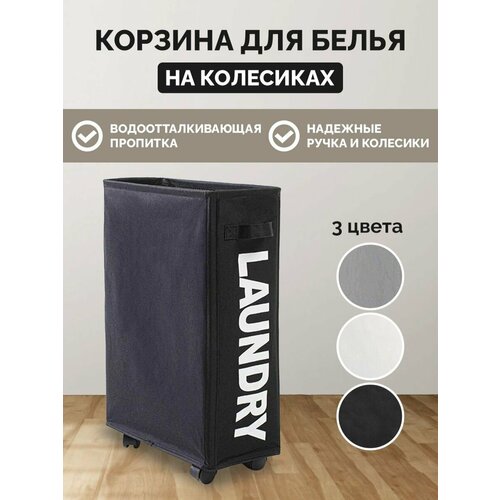 Корзина для одежды на колесиках, черная