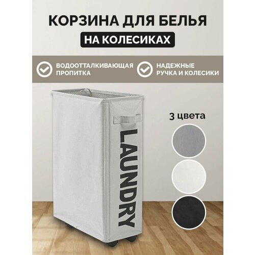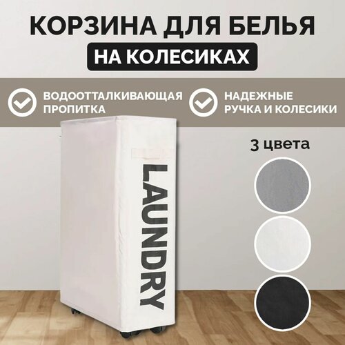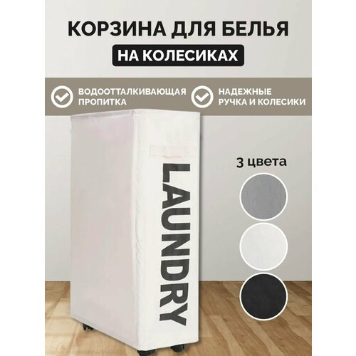 Корзина для одежды на колесиках, белая