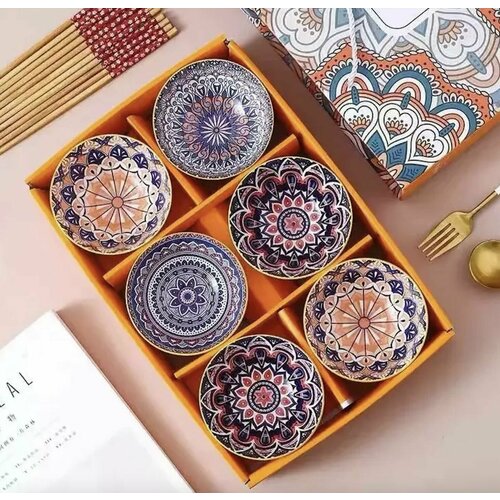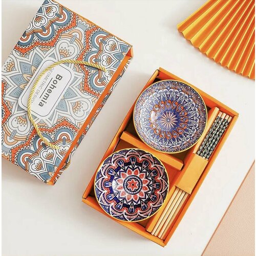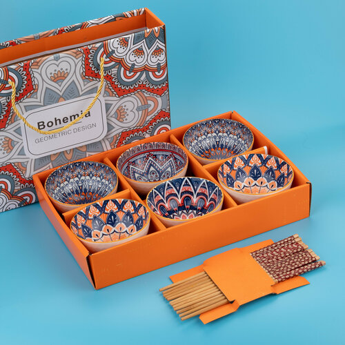 Подарочный набор керамических мисок 300 мл дизайн Bohemia 6 шт, палочки 6 наборов