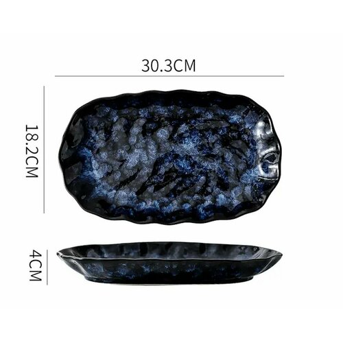 Японский керамический фарфор Japanese Retro 30 см 1 штука, неправильная форма, ручная работа, синий