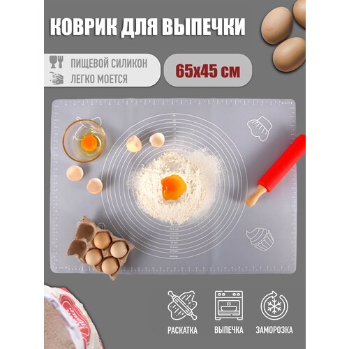Силиконовый коврик для раскатки теста, для выпечки, с разметкой, белый/прозрачный 65х45 см