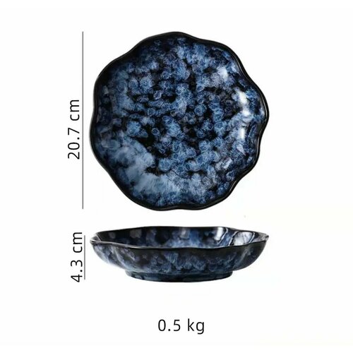 Японский керамический фарфор Japanese Retro 20 см 1 штука, неправильная форма, ручная работа, синий