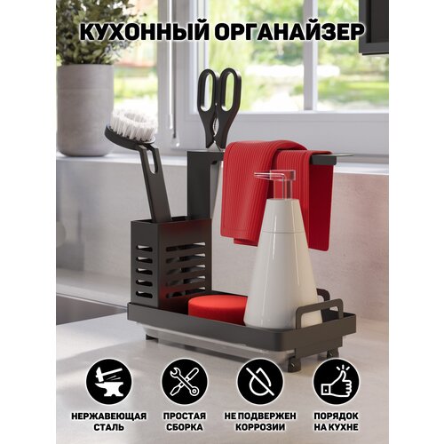Кухонный органайзер для мойки и раковины homEscape, держатель для губки, полотенец, моющего средства, подставка для кухонных принадлежностей