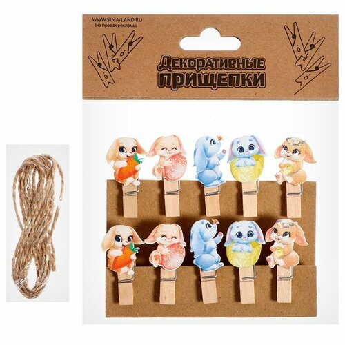 Прищепки декоративные «Милые зайчики» набор 10 шт, 1.5 × 12 × 14 см для дома