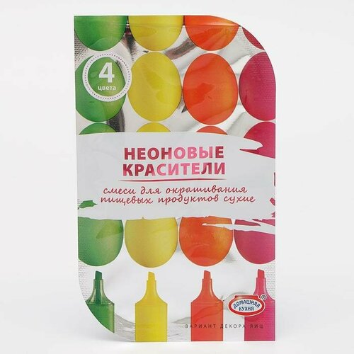 Смеси для окрашивания пищевых продуктов Неоновые, 4 цвета, пасха, 9 штук