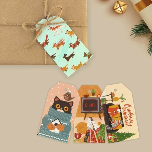 Шильдик декоративный в наборе «Уютный новый год», 6 шт, 5 × 9 см для дома